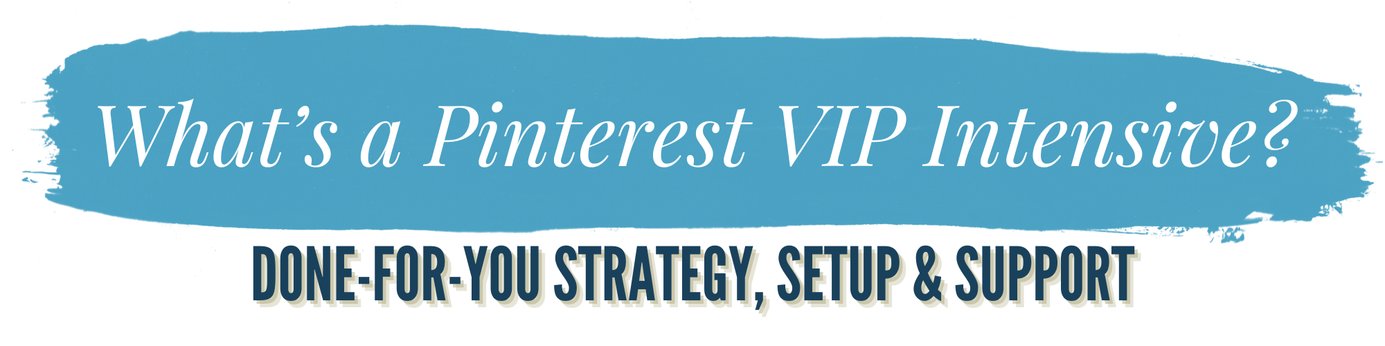 Jump start your Pinterest success with a VIP Intensive, and grow your audience and your leads with a custom Pinterest strategy and an optimised Pinterest setup for you, plus simple workflows that you (or your team) can follow to pin after our VIP Intensive.
